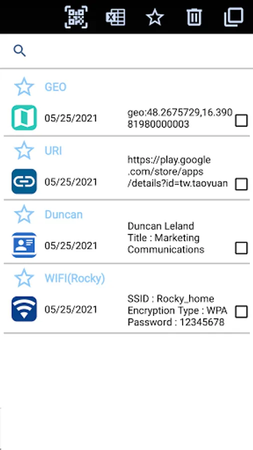 QR code scanner app can read and decode all types of QR code and barcode, including contacts, products, URL, Wi-Fi, text, books, E-mail address, location, address, calendar, etc.