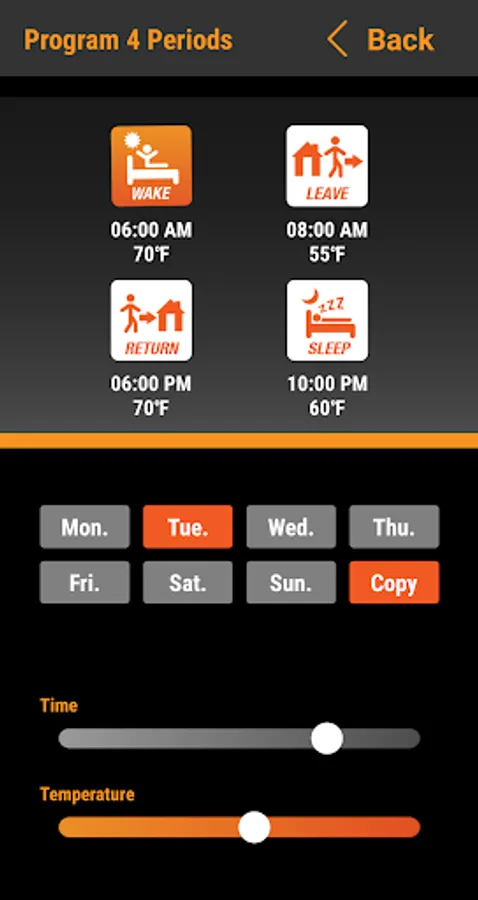 Offering simple thermostat programming and temperature control.