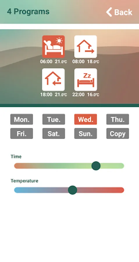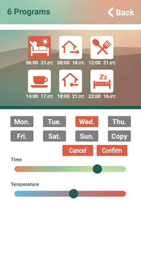 ● Program and control your thermostats via Wi-Fi at home or outside.