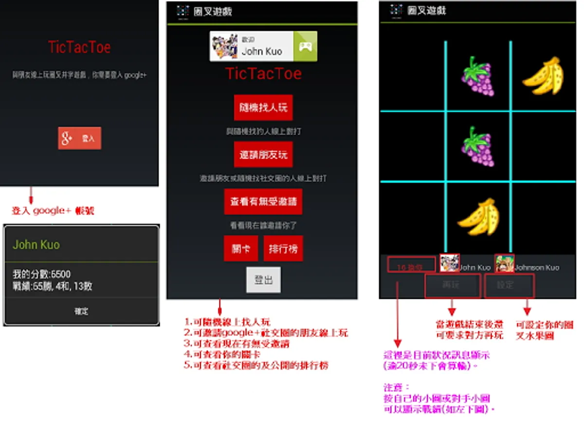 Tictactoe game supports Google Play game service after the version 1.4 , can find someone to play online.