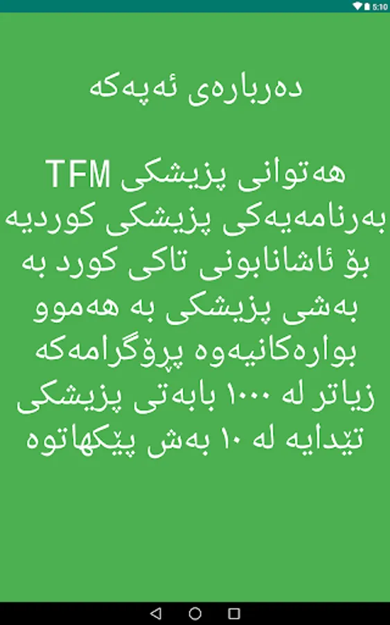 هەتوانی پزیشکی TFM بەرنامەیەکی پزیشکی کوردیە بۆ ئاشانابونی تاکی کورد بە بەشی پزیشکی بە هەموو بوارەکانیەوە پڕۆگرامەکە زیاتر لە ١٠٠٠ بابەتی پزیشکی تێدایە لە ١٠ بەش پێکهاتوە