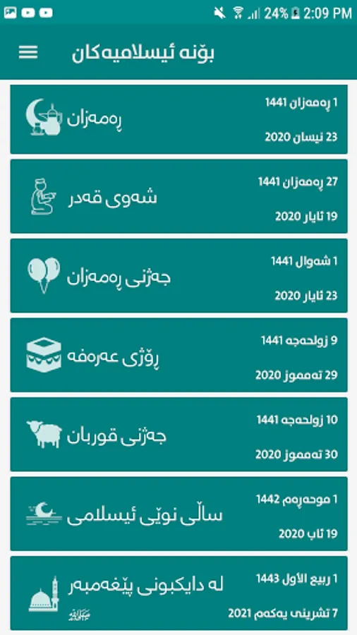 الأحداث الإسلامية: تحدد بسهولة متى تكون الأحداث الهامة في السنة الهجرية (هجري) ، بما في ذلك رمضان وعيد الفطر وعيد الأضحى.