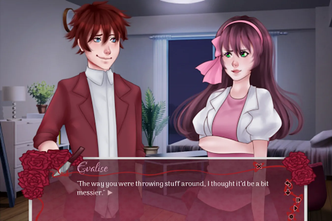 That Which Binds Us is a josei otome visual novel centered around a young woman named Evalise. The full game is over 5 hours long and contains a new game+ featuring an alternate story line as well as choices later on that affect dialogue.