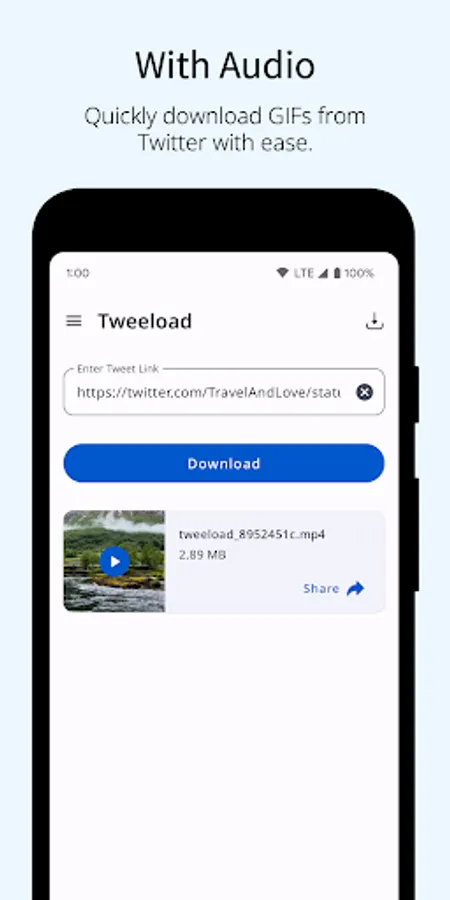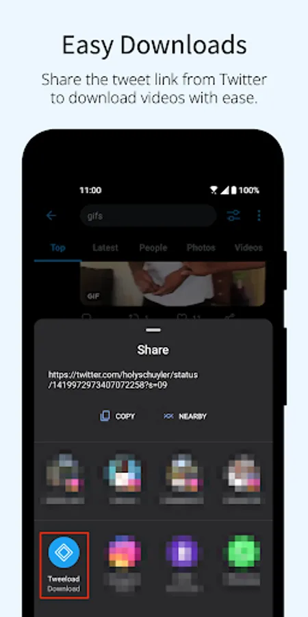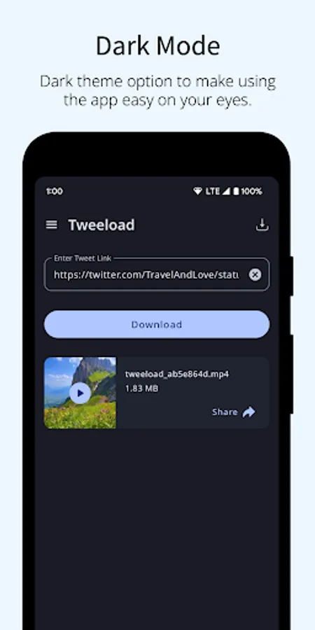 - Share the videos to any app directly from the Tweeload app.
