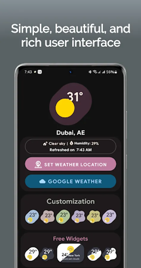 A standalone app that offers beautiful weather widgets inspired by Android Twelve / Android 13 / Android 14 widgets / Pixel 6 widget / Pixel 7 widget / Pixel 7a weather widget design with all of the modern styles in high quality and beautiful fully customizable design.