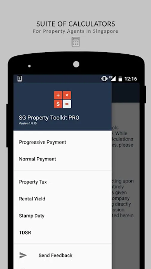 SG Property Toolkit PRO is a comprehensive private property calculator developed primarily for property agents in Singapore. It comes with a progressive payment calculator for new launches, normal payment calculator for resale properties, rental yield calculator for landlords, stamp duty calculator for buyer, seller and tenancy, TDSR calculator for affordability check and a property tax calculator. Every calculator you need to meet all your different clients' needs.