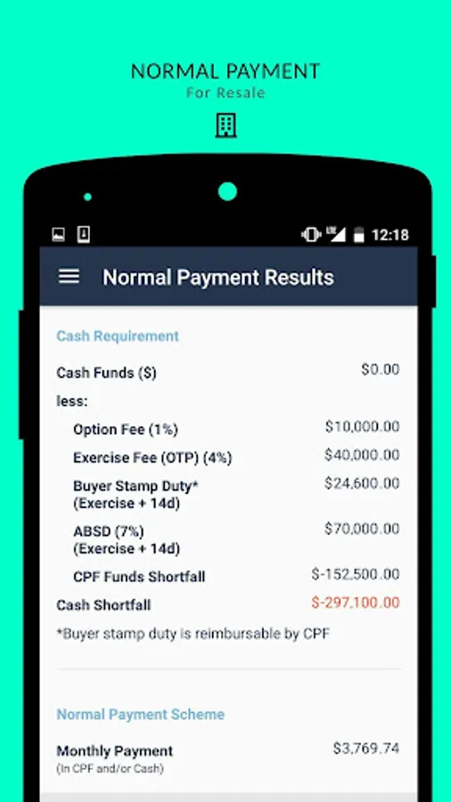 - Input CPF and cash on hand to get an indication of client's surplus/shortfall or input CPF amount only to know how much cash is needed
