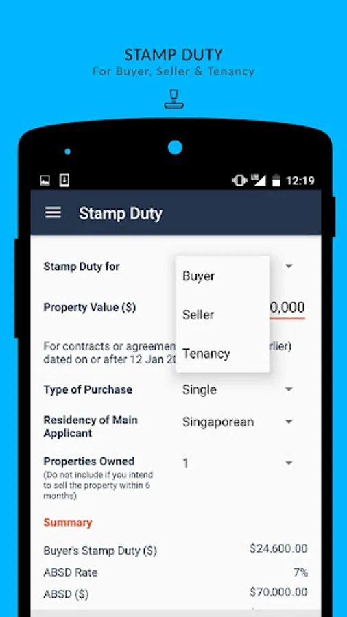 - Supports Buyer, Seller (Residential & Commercial) and Tenancy stamp duty