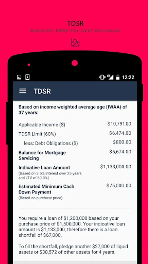 - TDSR calculator now provides suggestions to fill the buyer's purchase price shortfall through pledged liquid/other assets and unpledged liquid/other assets!