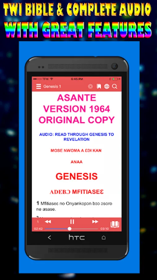 There is no other Twi Bible with complete audio Clean and perfect than this. Versions.