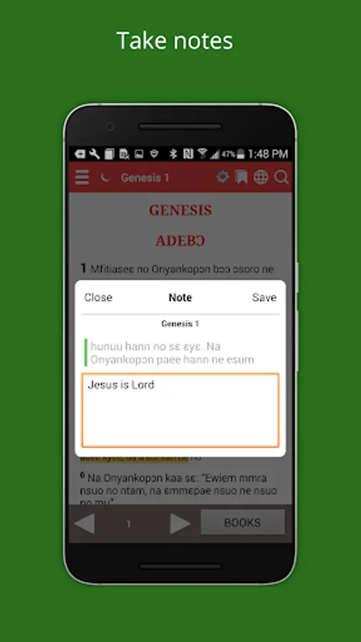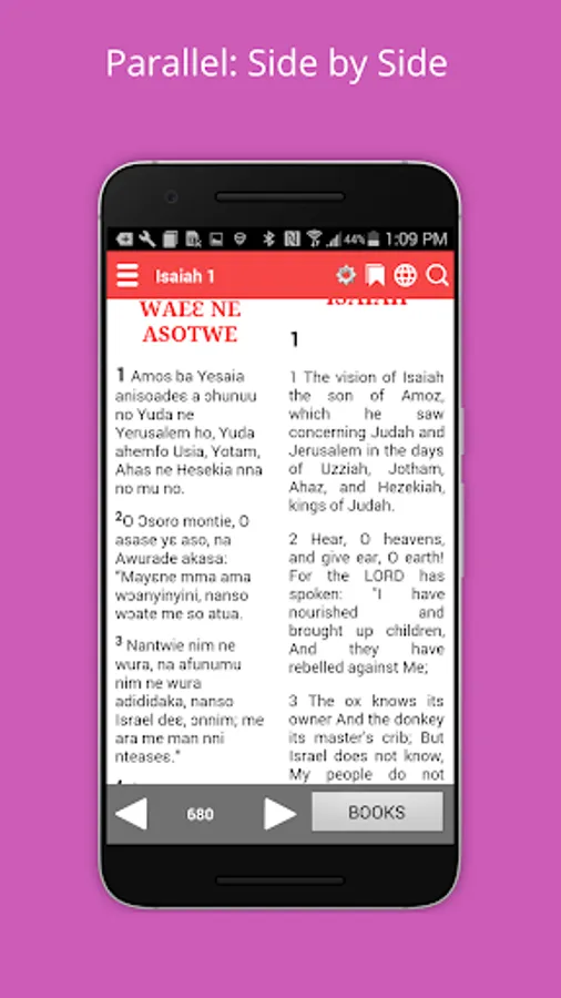 • Split-screen mode to read two Bible translations at once (Twi and English)