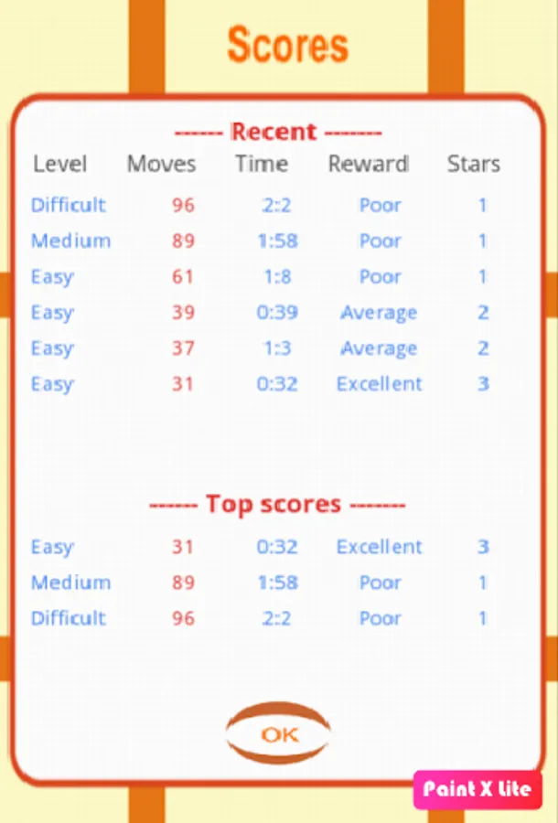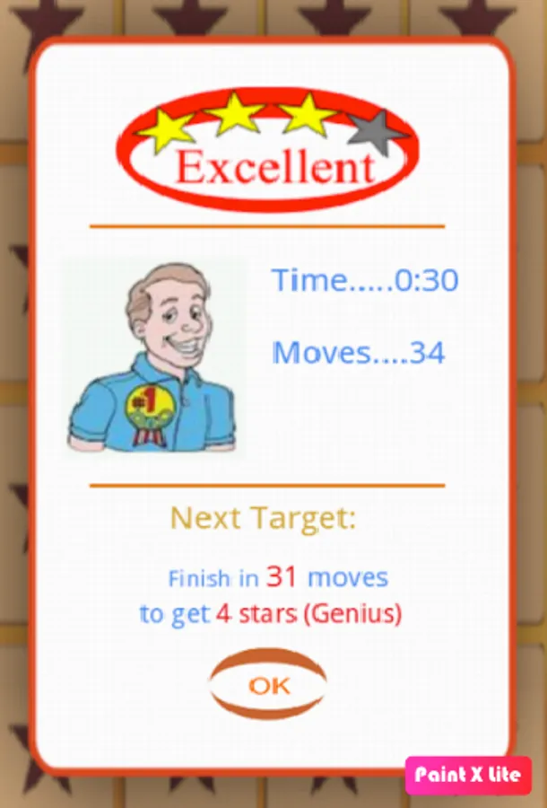 Memory levels achieved are Genius (4 stars), Excellent(3 stars), Average (2 Star) and Poor (1 star).