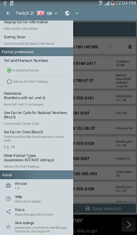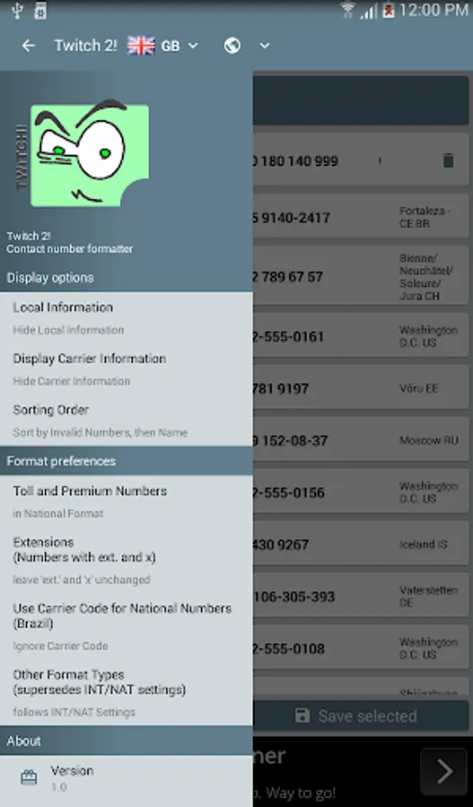 Twitch 2! Contacts Formatter is a Contact Number Editor and Formatter for the mildly OCD (and international travellers, or people who just like their contact numbers orderly formatted).
