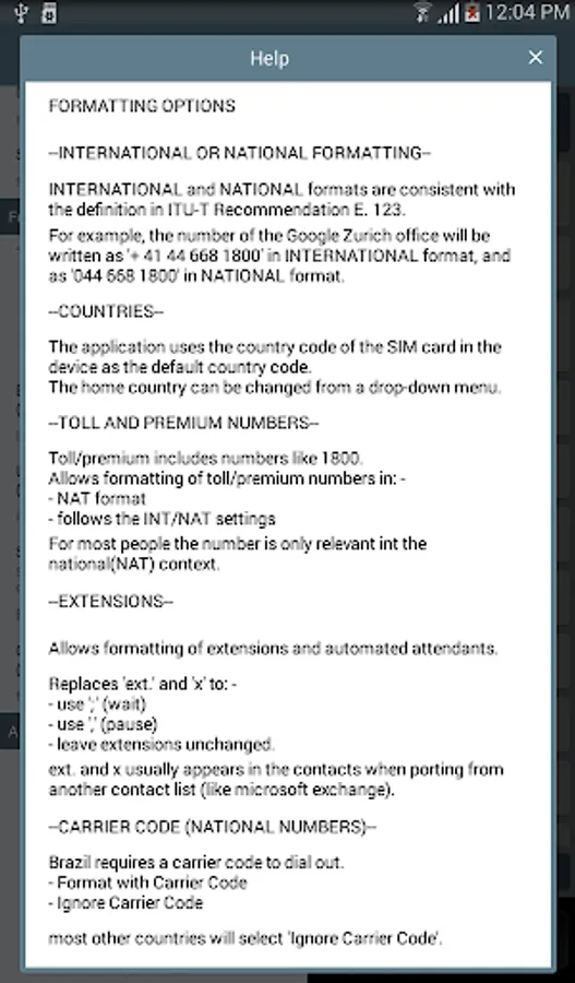 You can change this default from a drop-down menu (useful if you have contacts from many different countries, or if there are no SIM card in your device).