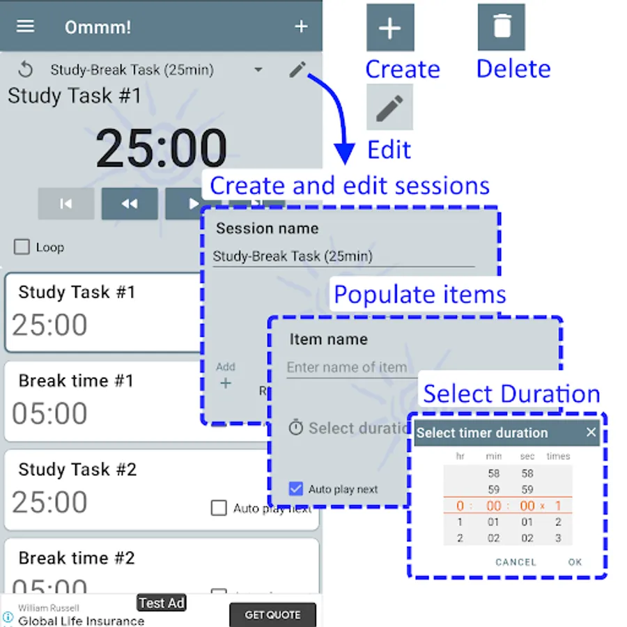 Ommm! is a simple timer app that gives gives a short prompt in each stage of your meditation sessions, yoga routines or gym work out sessions.