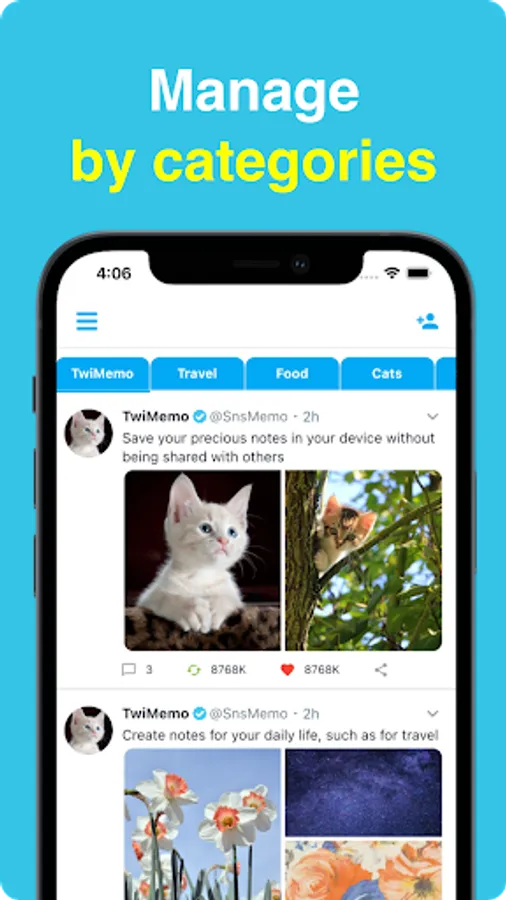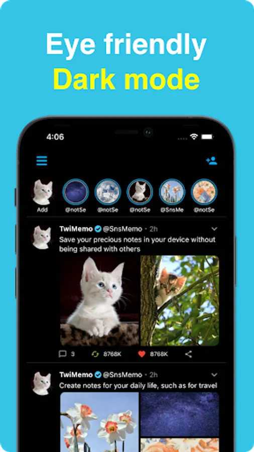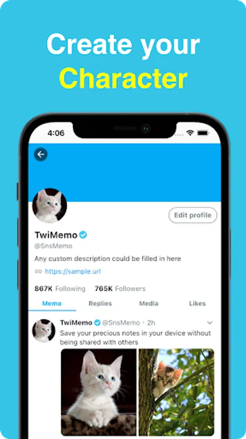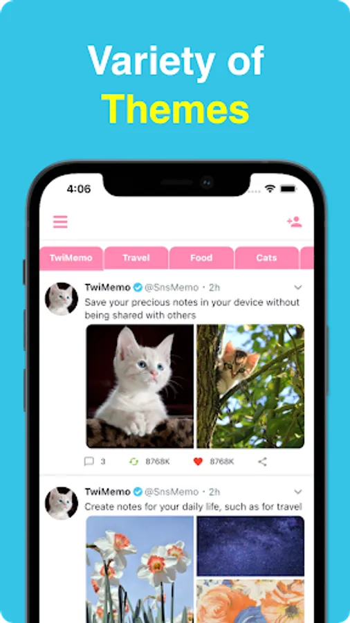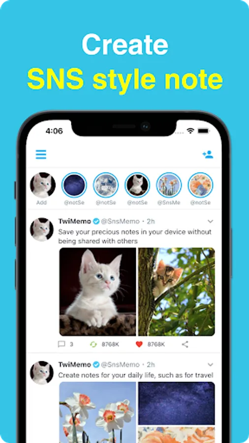 This is SNS style note app and Your notes will not be shared with others and will be stored within the app.You can set any icon, able to edit users profile.