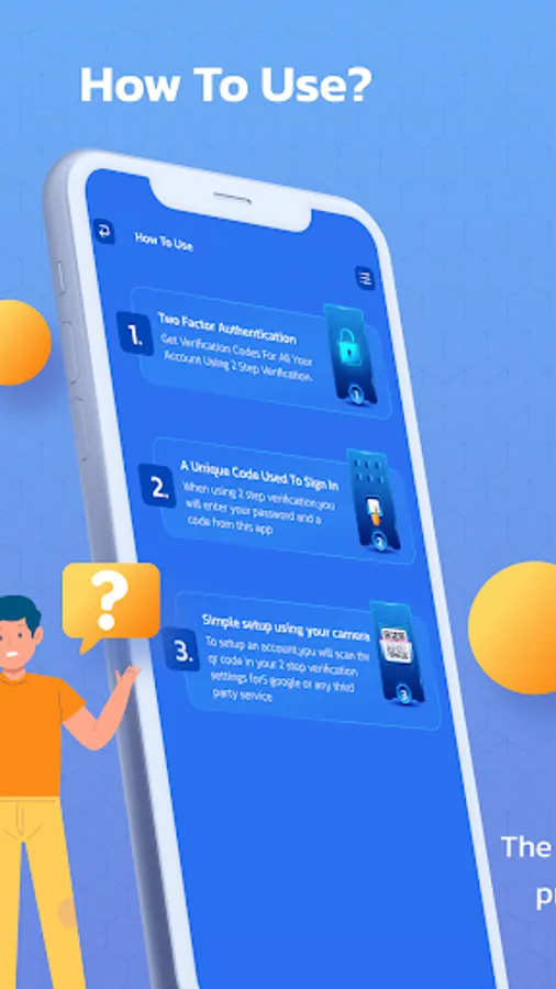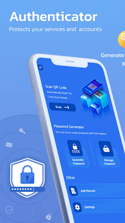 This Authenticator App makes your logIn more secure! By Automatically Scanning a QR Code .This Authenticator App generates a Unique code to Protect your LogIn And Accounts
