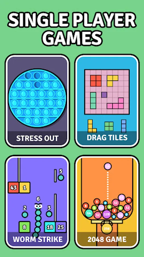 With mini games, you can make friends nearby or from around the world, play two player games (duo), and stay connected with your favorite people.