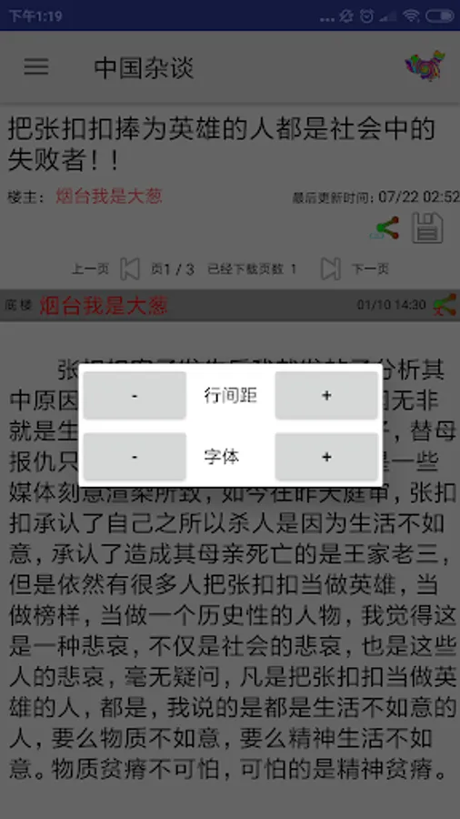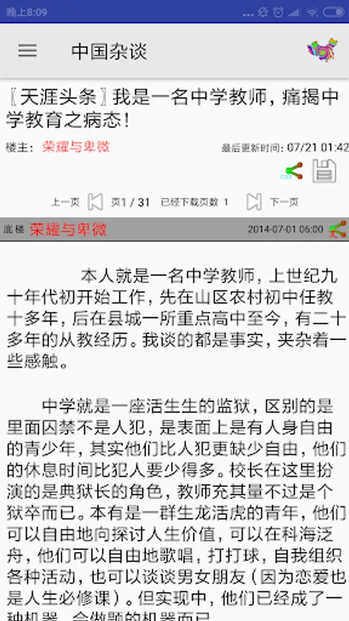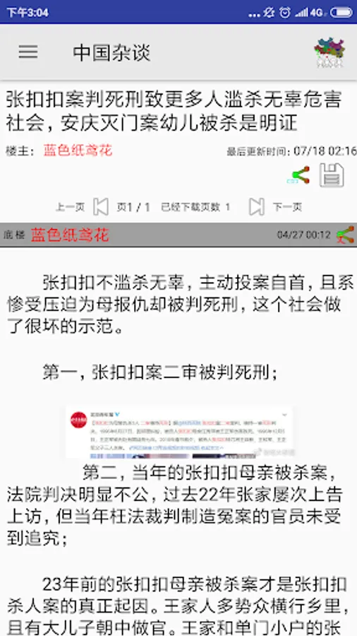 Use this app to read "Tianya Miscellaneous Talk", you can easily collect the post, set the network download mode, follow up the latest update of the post, or output the post to the file. This app does not use any permissions other than the network (it requires external storage permission when outputting to a file), and you can use it without any personal information.