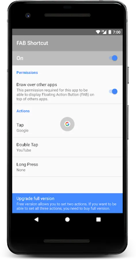 • You can set actions of FAB for Tap, Double Tap, and Long Press.