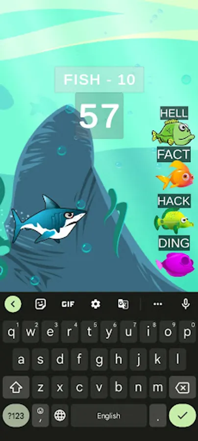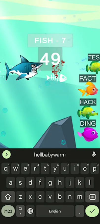 3) Type those words on the keyboard to help the shark eat those fishes.
