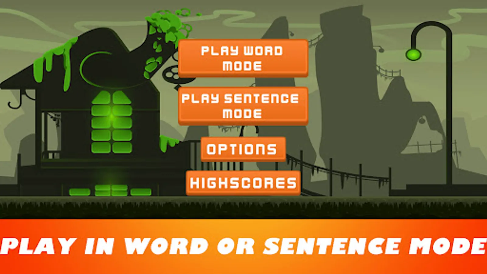 1) Sentence Mode – Zombies with words forming a motivational quote will appear. Type and Shoot Them. Improve your Typing speed.