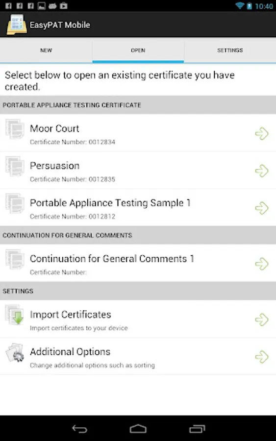 On completion of reports you simply upload certificates over your devices data connection, which can then be instantly downloaded direct into the EasyPAT desktop software. There is no messing around connecting your phone to your computer as everything is wireless making it quick and easy.