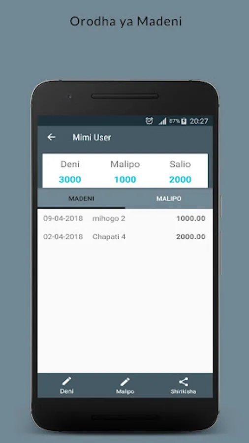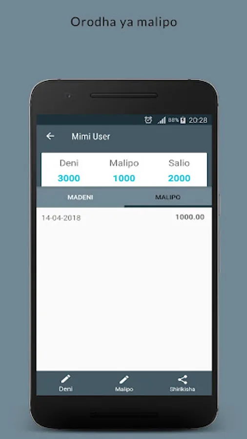 Ni App inayomuwezesha mtu kutunza kumbukumbu za madeni na malipo ya kila alie kopeshwa.
