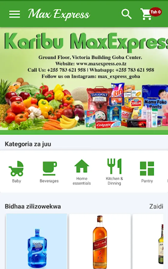 MaxExpress Goba App is an online extension of Max Supermarket Goba. Max Supermarket is a grocery and home needs shop located in Goba, Dar es salaam. In executing our mission to simplify the way our customers shop, we introduced an online shop where you can order your home needs and we deliver at your door step.
