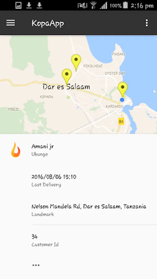 KopaApp, is a special tailored app to reach out customers spread across the city with no hustle. Pay a visit once and mark the location, then send any delivery person. Using KopaApp, customer will be reached and product delivered safely.
