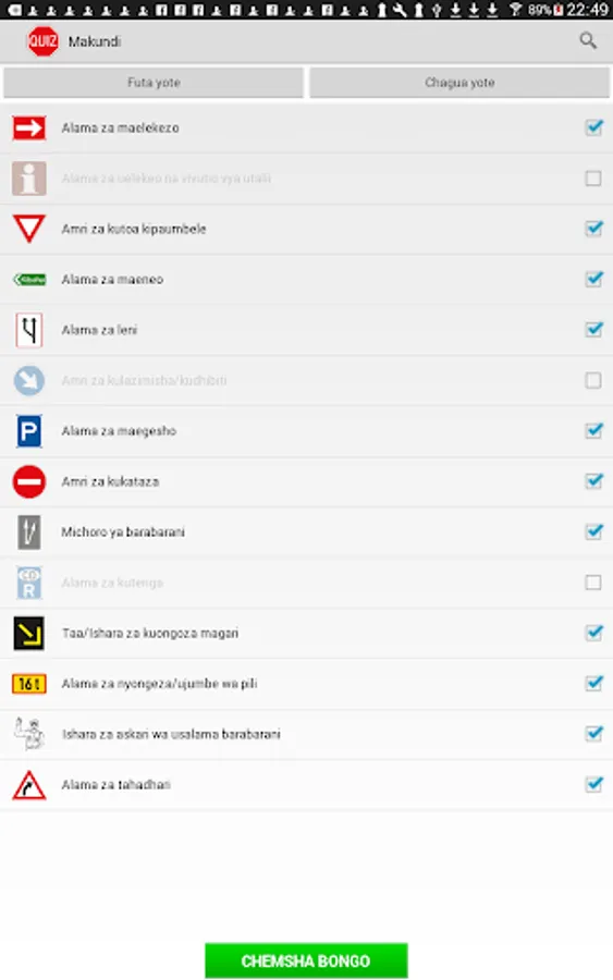 APPLICATION HAS THE FOLLOWING ITEMS: