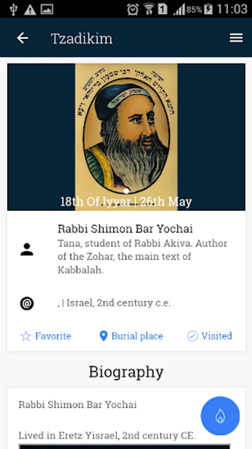 • Learn about them, know their burial place, share information and pictures you may have about them, add them to your favorite list and mark the Tzadikim you have visited.