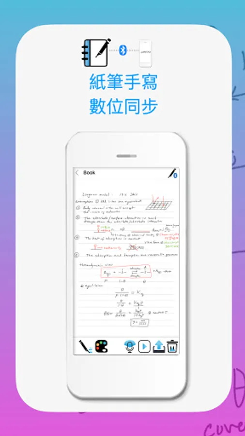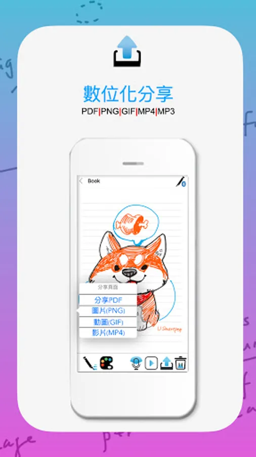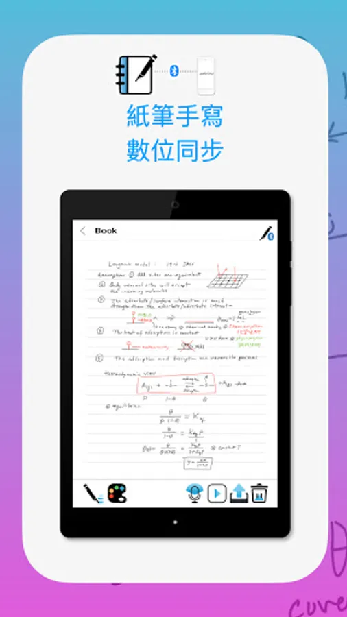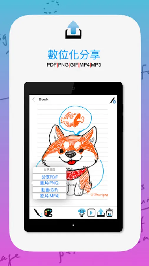 U Smartnote is a digital note-taking APP software used with smart pen U Smartpen. With smart pen (optical electronic pen with Bluetooth transmission, structure such as smart phone, internal computing processor, memory, camera lens, pressure sensor, Bluetooth Chips, rechargeable lithium batteries, etc.) write on dedicated code point paper, which can instantly digitize the content of handwriting and display it on a mobile phone/tablet for easy editing or sharing. It can also record voice synthesis handwriting/sound files or MP4 video files while writing, and can be replayed or combined with online teaching conference platform for remote teaching real-time sharing. More applications are used for teachers to prepare lessons, reporters' writing or personal notes, diaries, illustrations, professional creative sketching, corporate meeting records, and filling in various forms, etc.