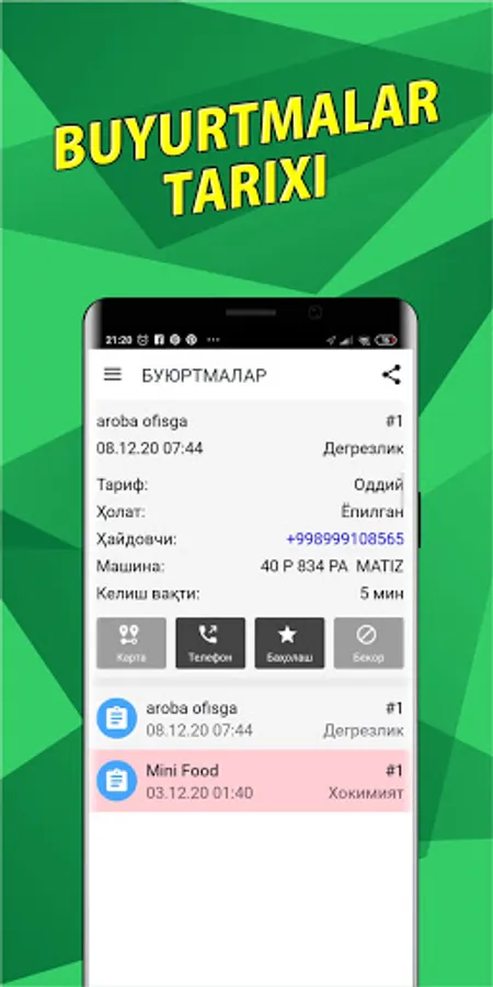Aroba Taxi kompaniyasining mijozlari uchun mobil ilova