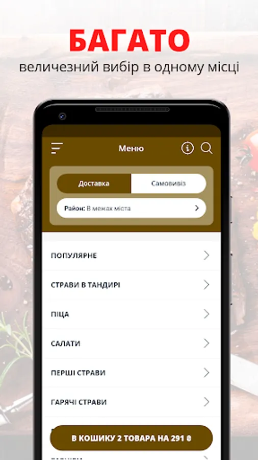 Fast delivery to any corner of Poltava, convenient menu and order payment, promotional offers and much more - just install the mobile application!