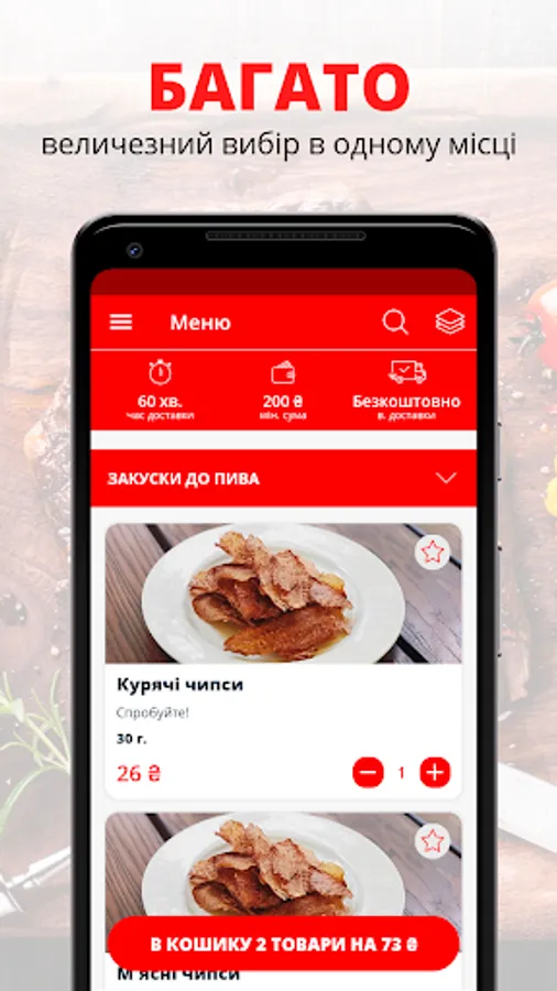 Pick up everything you love: sushi, pizza, burgers and food from the European and Ukrainian cuisine. And mi? And mi garantuєmo delivery of savor to your home for 90 hilin