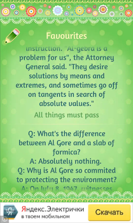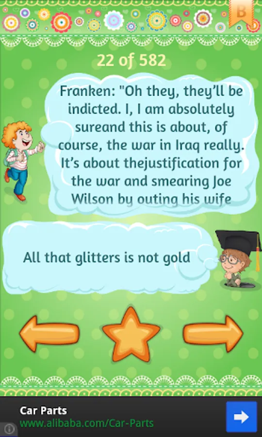We're glad to propose you the collection of over 500 pairs of jokes and proverbs paired in this application. The idea is to make your day with small joke and make you stop for a moment and think a bit on life with a proverb at the same time.