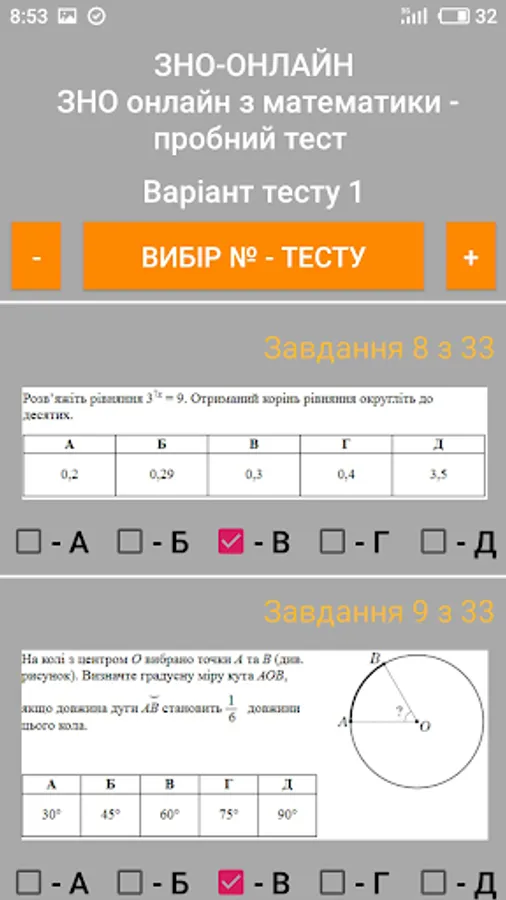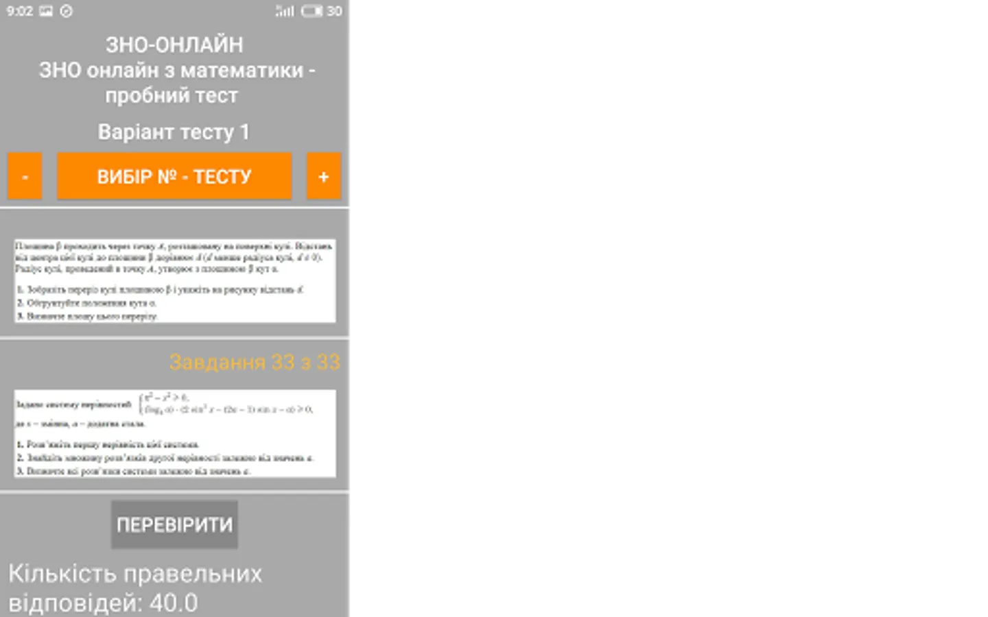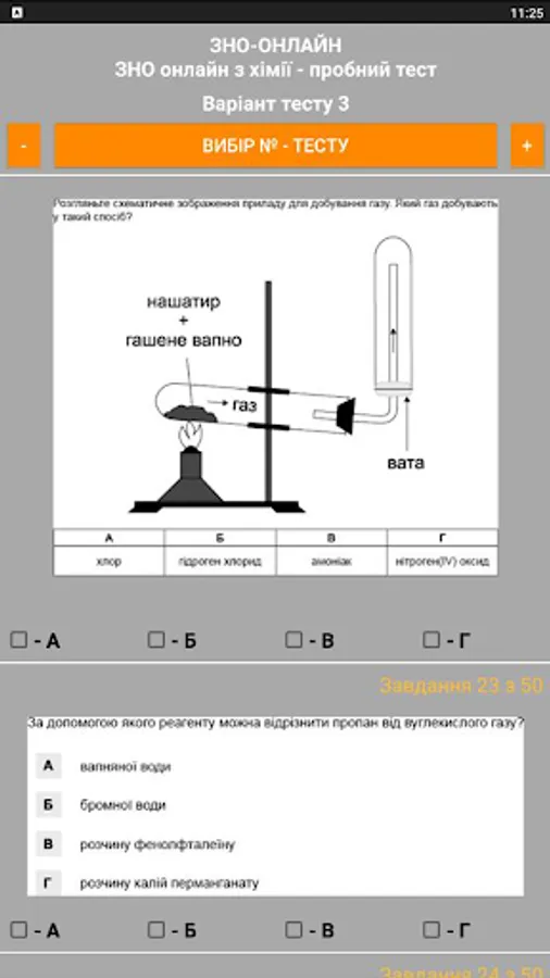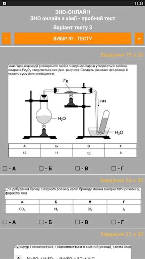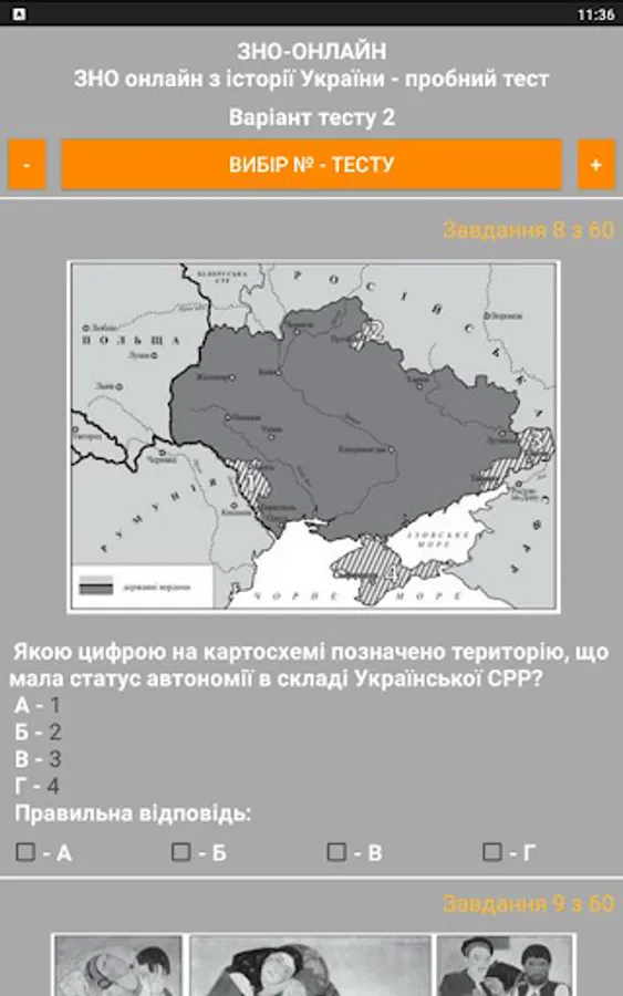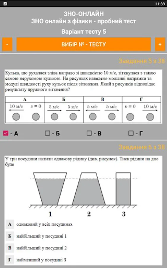 The ZNO-Tests program gives students the opportunity to undergo test testing, which enables them to test their level of knowledge. The way to perform all the test tasks in the proposed tests is as close as possible to the real tests. The program offers the possibility of passing the test and checking for errors when the wrong answer is given (the wrong answer is highlighted in red), as well as the result of the total number of correct answers (the correct answer is highlighted in green).