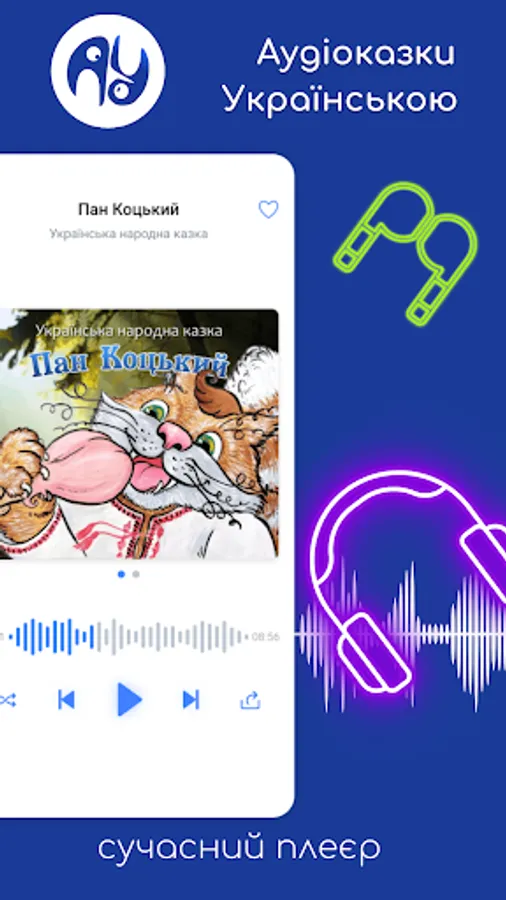5. A functional player that allows you to listen to audio fairy tales in Ukrainian both in the application and in the background (when the application is minimized and when the screen is locked).