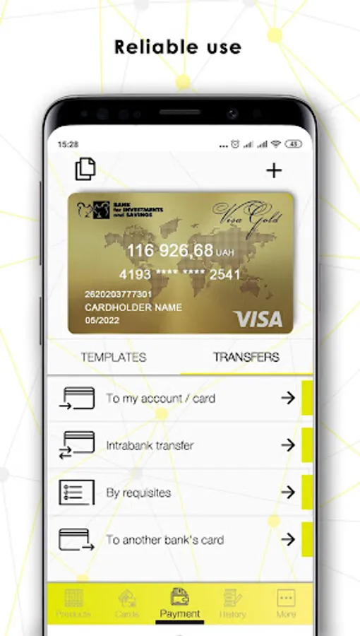 • Transfer of funds between own accounts/cards and in favor of third parties;