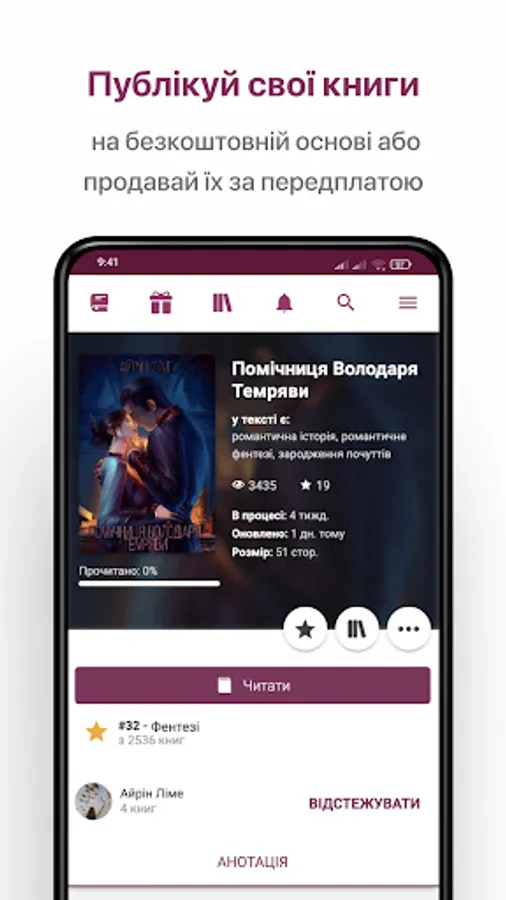 You can read online not only completed works, but also books that are published directly as they are written, chapter by chapter. Commenting, receiving answers from authors, following your favorite writers, building a personal library of books, and that's not all.