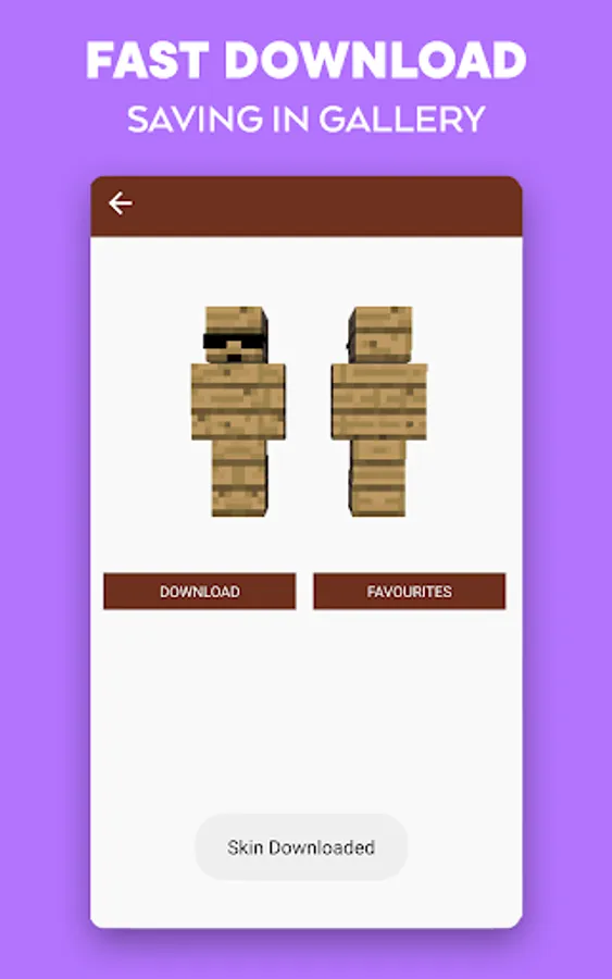This application offers more than 500 ++ stylish camouflage skins. You can find the following categories of skins: with white eyes, 4d skins, top youtubers skins, popular skins, with capes, superheroes, hot skins, horror, glasses, hackers, skeletons, noobs, skins, lucky blocks, military.