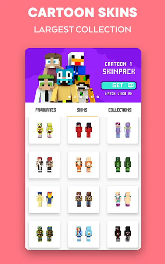 Cartoon Skins is a completely FREE app with great features. You will not need a launcher (mod Installer).