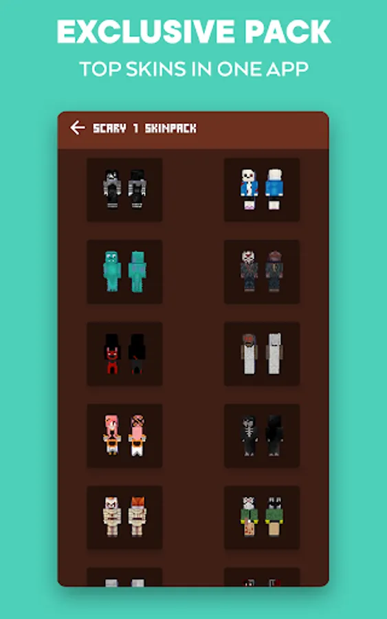 If you are a fan of horror movies then you must download this app! The scariest horror skins in one place. Download all skins for FREE and without restrictions.
