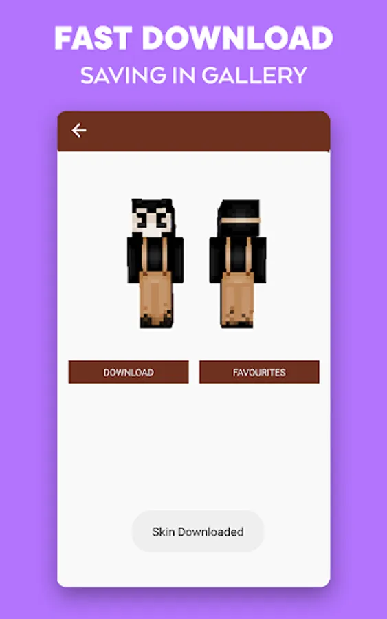 💀 Our application provide more than 500 ++ stylish skins. (You can download skins for girls, for boys, bloggers, streamers, letsplayers, top youtubers skins, headphones, anime, popular skins, glasses, hackers, crazy, slimes, griefers, with white eyes, camouflage, 4d skins, with capes, herobrine, mobs, from cartoons, military, baldi, jeff the killer, slenderman, Granny, animatronics, freddy, bendy and many others)