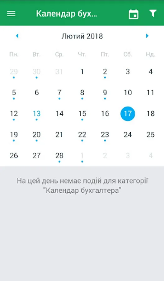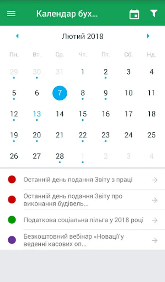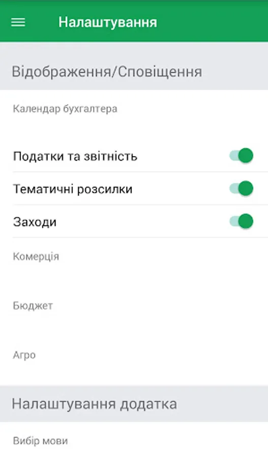 • Finished calendars, set up under you. You can choose the calendar during your business activity - Commerce, Agro, Budget, which will see reminders of tax payment, reporting and other matters.