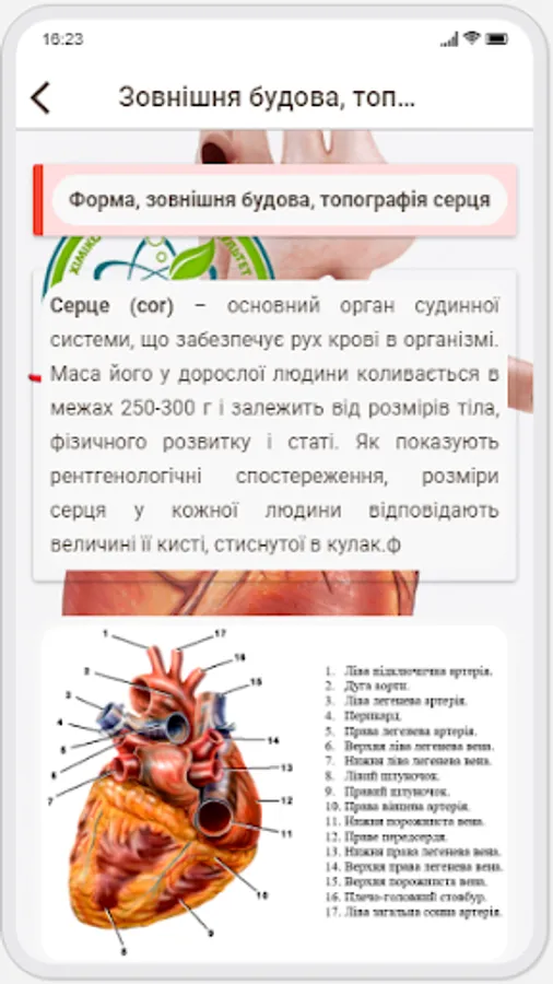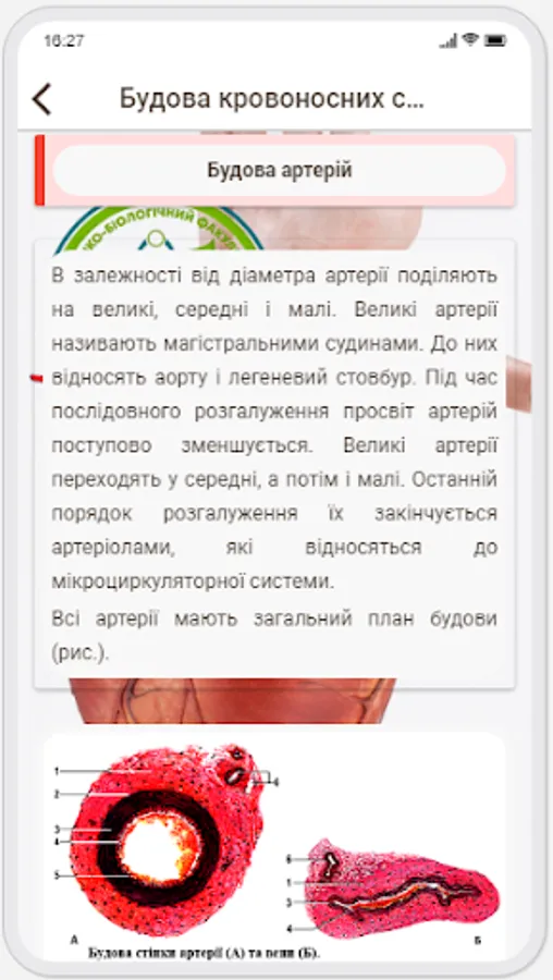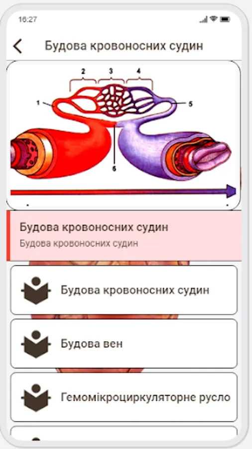 This mobile application highlights the main features of the structure of the human angiology
