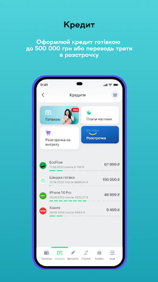 Обирайте в розділі “Кредити” розстрочку або кредит готівкою.