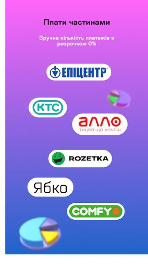 Оформлюйте товари та послуги в магазинах наших партнерів з сервісом “Плати частинами" без переплат!