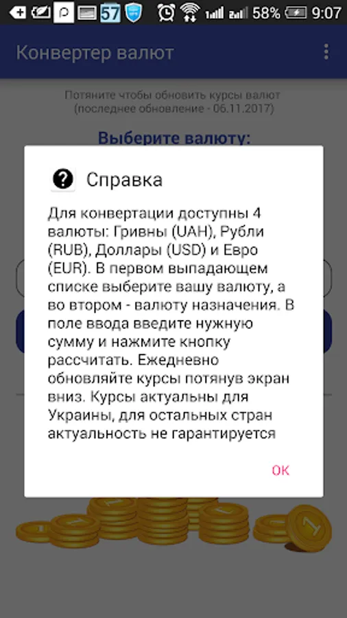 Convenient conversion between rubles, dollars, euros and UAH under NBU rate.